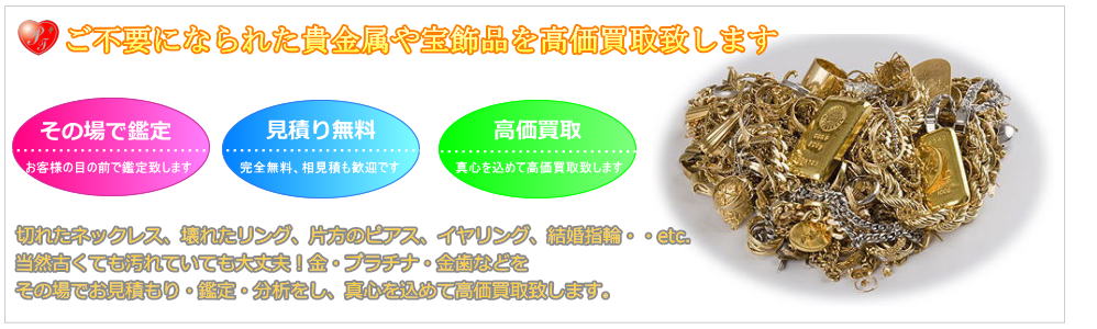 ご不要になられた貴金属やダイヤモンド、宝飾品をその場で現金高価買取致します。