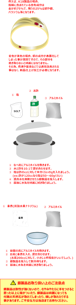 3.の方法は、シルバー専用の液薬を使用し、洗浄します。